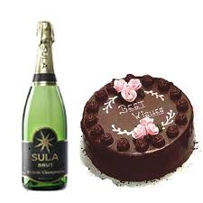 half kg chocolate cake and branded Indian Sula champagne bottle this sparkling wine will enchant you with its pear and apple aromas, its crispiness and its wonderful finish. Note: champagne/wine not available in gujarat and tamil nadu state