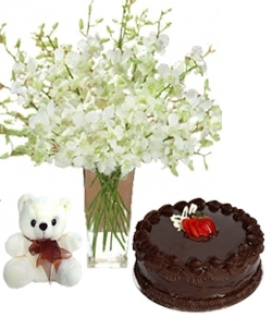 Purity 20 Orchids 1/2 Kg Chocolate Cake & 6 Inch Teddy Bear