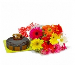 Bunch of 10 mix colour gerbera with half kg chocolate cake