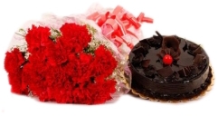 This bouquet of 12 Red Carnations with 1kg chocolate truffle cake