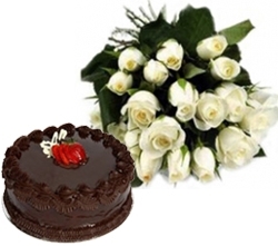 This divine beauty is a symbol of purity of heart. This is an ideal way to project. White roses are the flower of light, they are also called the brides flowers in some traditions. Bunch of 12 White Roses along with 1/2 Kg Chocolate Cake