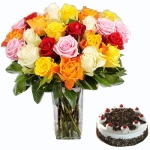 Bunch of 20 long stem Mix colour roses . And 1/2 Kg Black Forest Cake