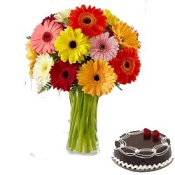 Bunch of 20 Mixed Gerberas and 1 Kg Chocolate Cake