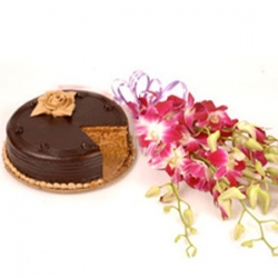 Sweet Impression 6 Orchids Stem with Half Kg Chocolate Cake