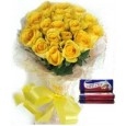 Bunch of 12 Yellow Roses & 2 Cadbury Dairy Milk Chocolate
