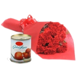 Bunch Of 10 Red Carnation wrapped in a beautifull paper packing with 1 kg gulab jamun box