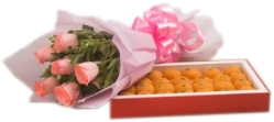 Bunch Of 10 Pink Roses And 1kg Motichur Laddu