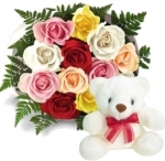 Bunch of 12 Roses With a 6 inch teddy bear.