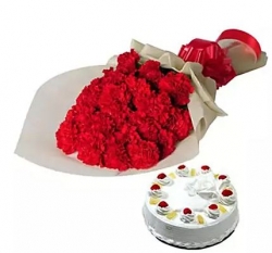 Bunch of 20 Red Carnations and 1/2 kg pineapple cake