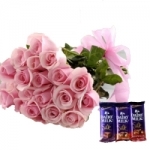 Bunch of 10 Pink Roses and 3 Cadbury Silk Chocolate