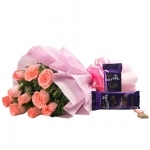 Bunch of 10 Yellow Roses along with 5 Bars Cadbury Dairy Milk Chocolates