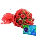 Bunch of 10 Red Roses with Seasonal fillers along with Cadbury Celebration Box