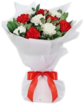 Bunch of 12 Red and White carnations in paper packing for your loved one in order to express your love to them