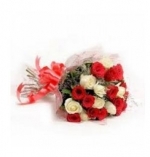 15 Red & White Roses Bunch in Cellophine Packing