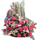 22 pink carnations and 2 purple orchids in basket This lush of love is an amazing basket of 22 pink carnations and 2 purple orchids that are arranged adorably with vibrant greenery will do its magic on love.