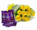 Bunch of 10 Yellow Roses along with 5 Bars Cadbury Dairy Milk Chocolates