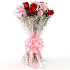 Bunch of 10 Red and pink Roses in Cellophane Packing