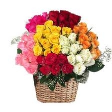 Symbol of pure love, care and affection. 100 Multi Color Roses Basket