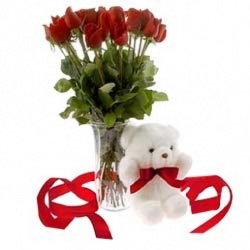 10 Red Roses Bouquet with a 6 Inches White Teddy. It is an adorable combo gift that every girl would love to get. It’s gorgeous, charming and is delivered Fresh. Her smile is guaranteed to arrive after the present.