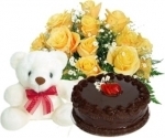 Bunch of 10 Roses, 6 Inches Teddy & 1/2 Kg Chocolate Cake