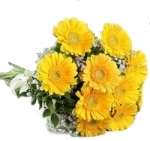 Bunch of 10 yellow gerbera Flowers speak a thousand word of love and care. Make this moment as beautiful as to be cherished till eternity, send this mesmerising for your loved ones in India