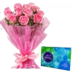 Bunch of 10 Pink Roses And Celebration Box