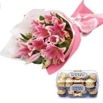 Bouquet of 6 pink Asiatic with 16 Pcs fererro rocher box