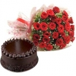 Bunch of 25 Red Roses,Half kg Chocolate Cake
